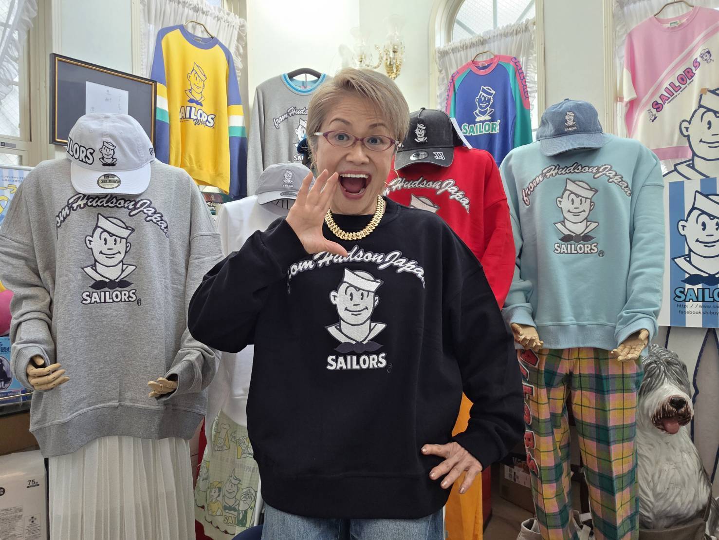 そのロゴとセーラーくんの胸刺繍がインパクト大のBIGトレーナーが