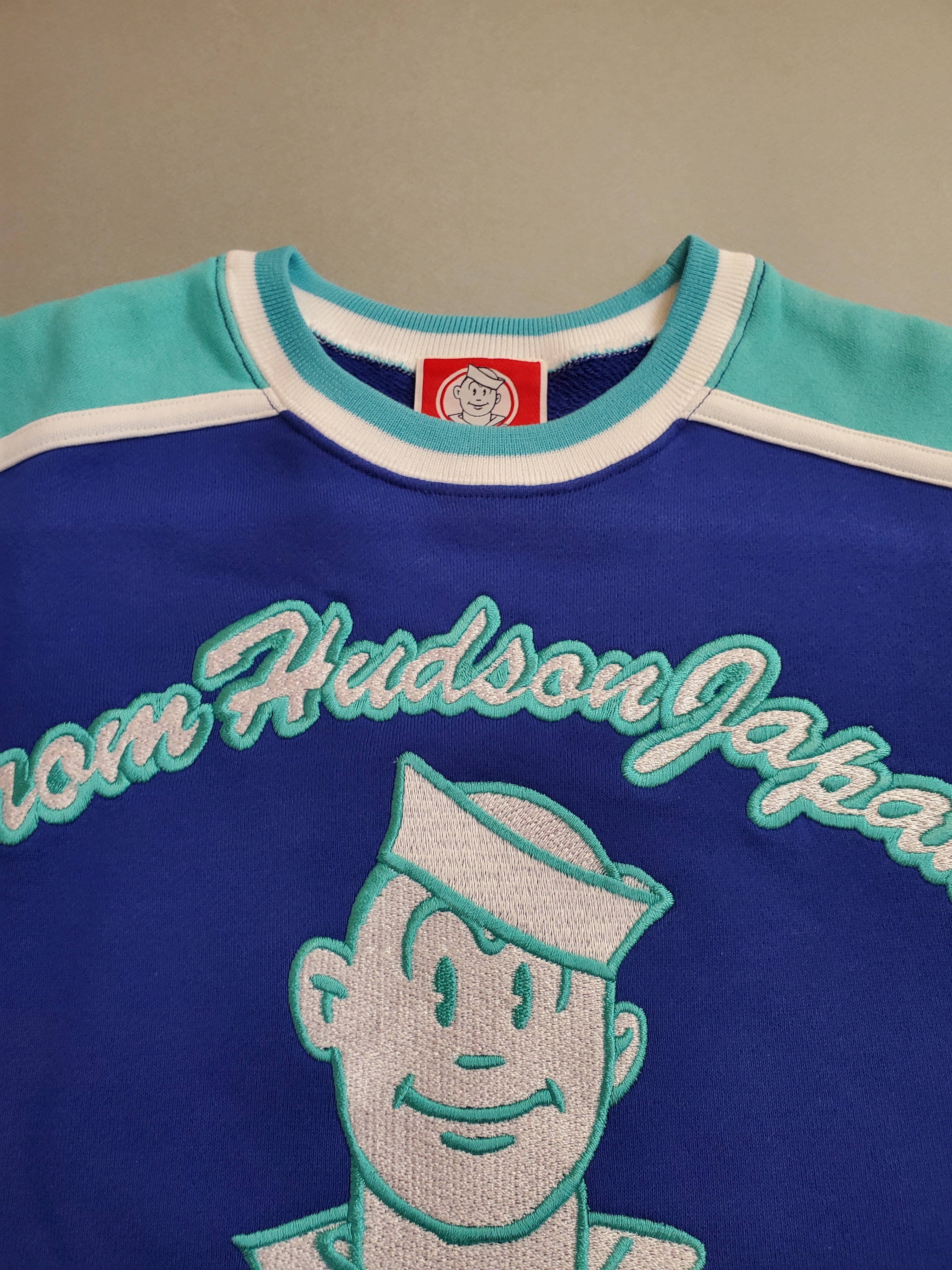 セーラーズの前身・ハドソンジャパンの文字とセーラーくんの顔が丁寧に刺繍されたプレミアムな仕様!
