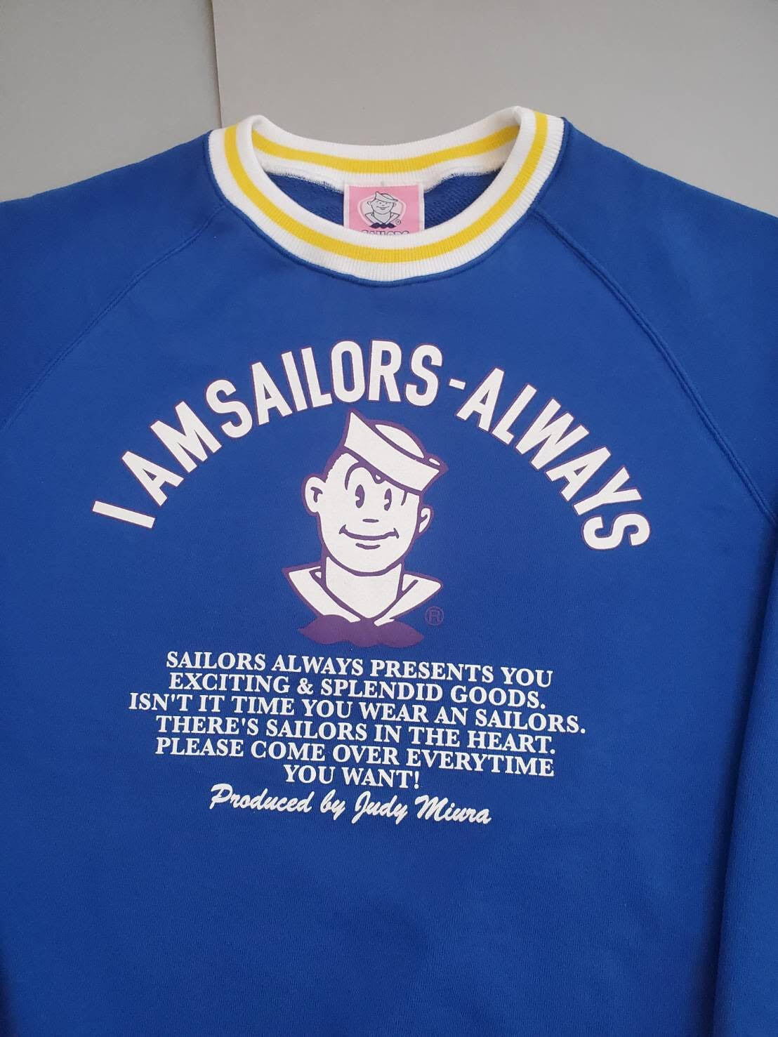 【その1.当時のプリントIAMSAILORSALWAYが胸に襟ウェストそで口リブ編みトレーナー】